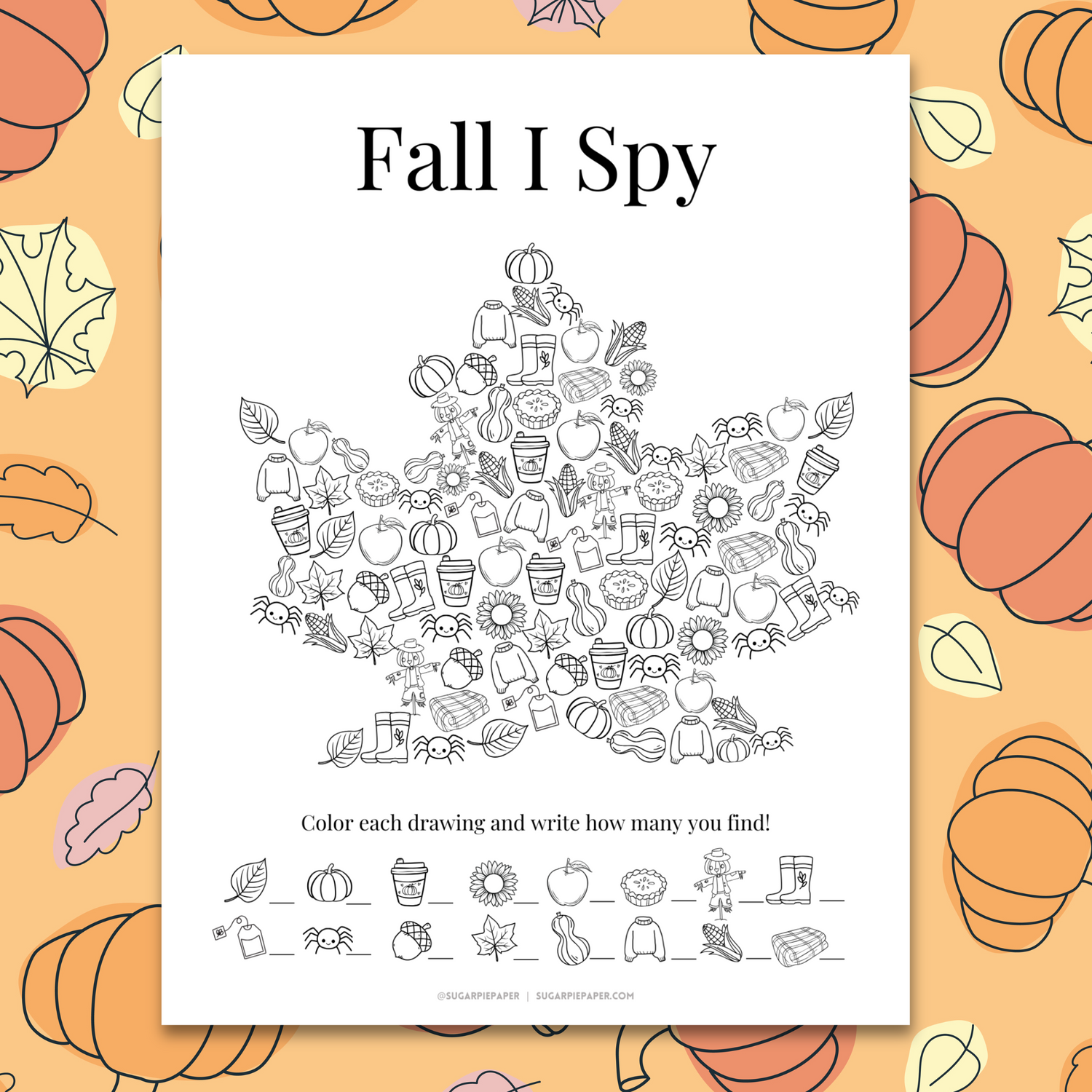 Celebrate fall with our free printable I Spy activity! Have your child color and count the illustrations on the page—perfect for class parties or homeschooling.
